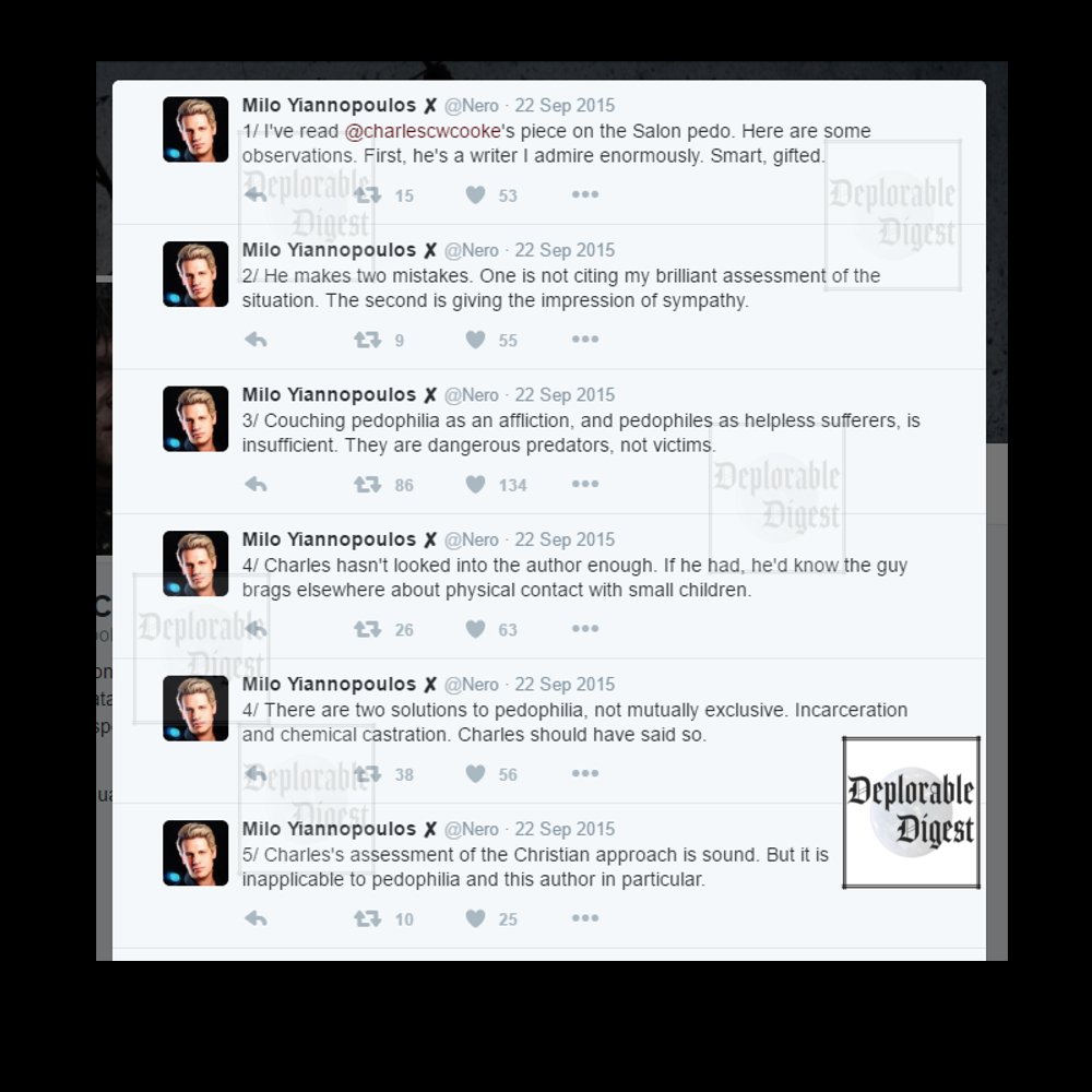 MSM: "Pedophiles deserve our sympathy." Milo: Critizes MSM for that view.
