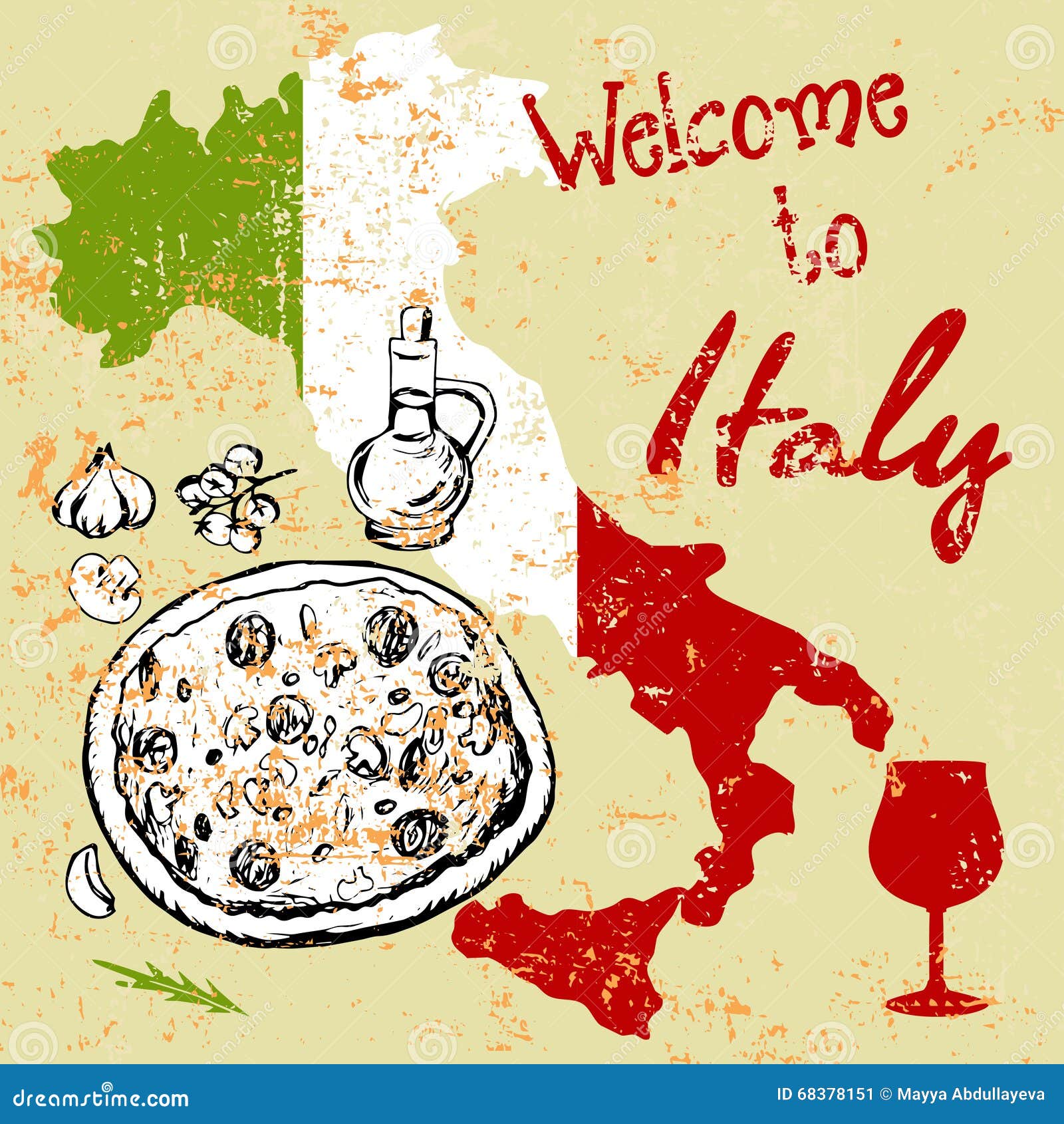 Here's a stock image pizza map https://thumbs.dreamstime.com/z/italian-map-pizza-vine-hand-drawn-68378151.jpg